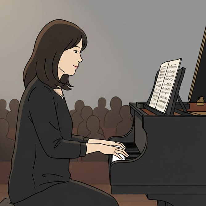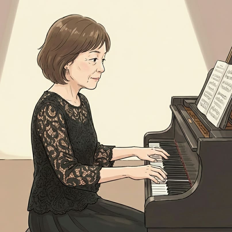 石川雅子先生のピアノ演奏シーン